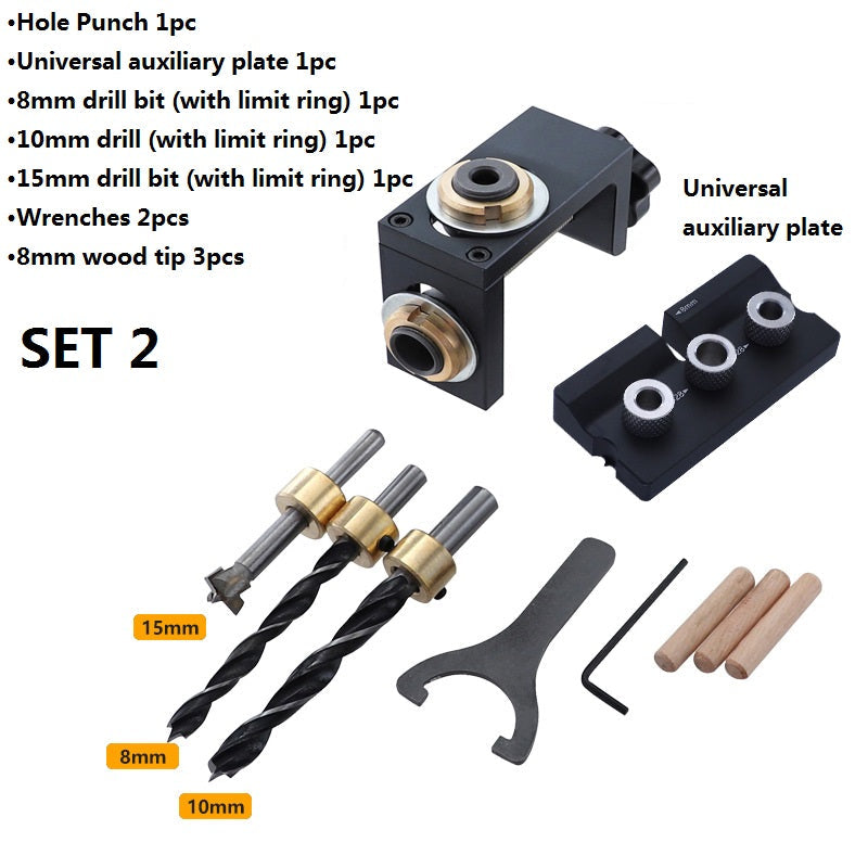 3 σε 1 Ρυθμιζόμενο Jig Doweling είναι ένας πολυλειτουργικός οδηγός τρυπανιού για τη διάνοιξη οπών πείρου και κάθετων οπών. Μέσα σε αυτοσφιγκόμενο σφιγκτήρα, είναι βολικό να στερεώσετε τον οδηγό τρυπανιού στο ξύλο. Είναι ένα τέλειο σετ εργαλείων ξυλουργικής DIY, εύκολο στη λειτουργία και τη χρήση.