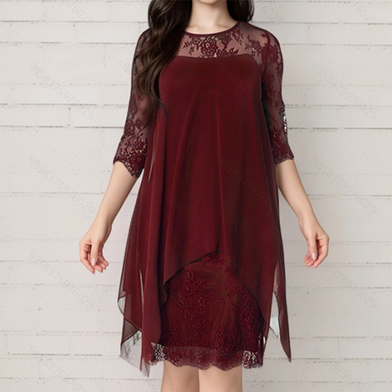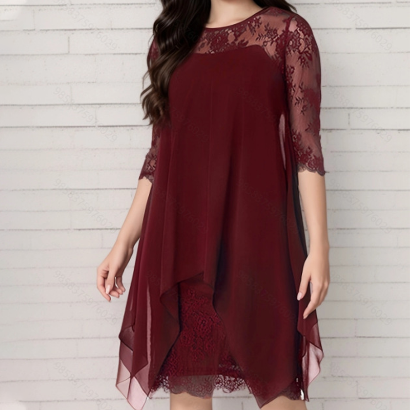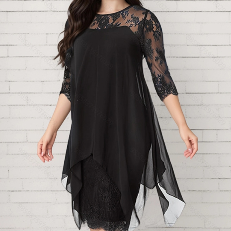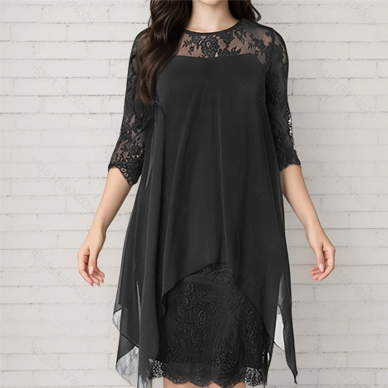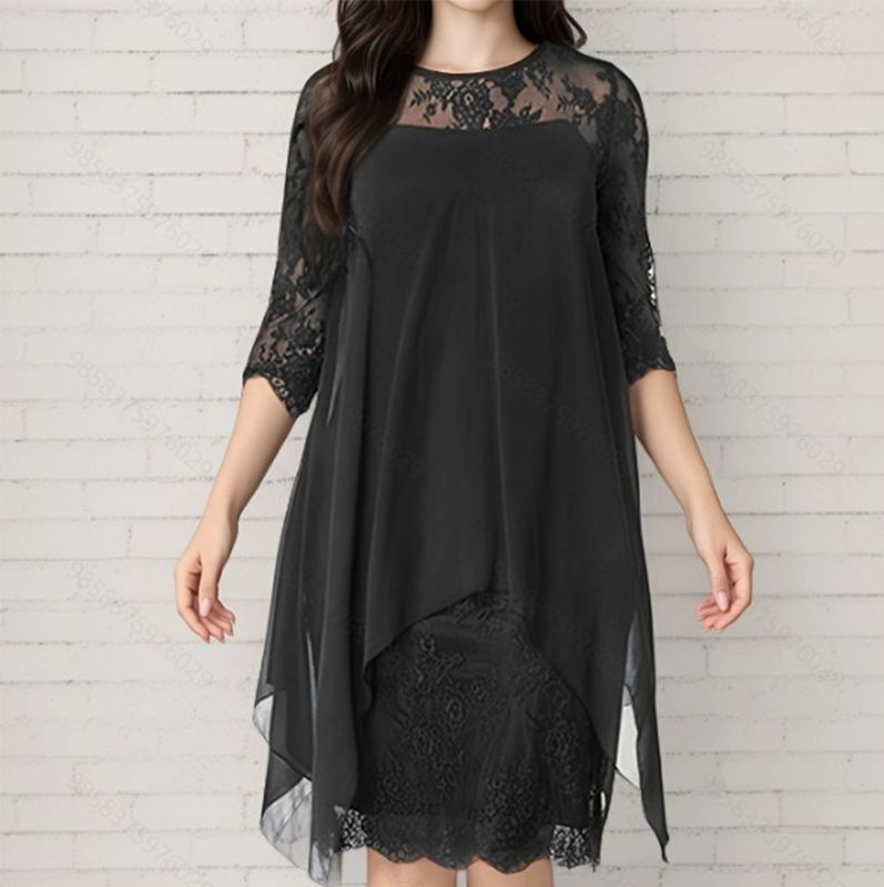 Το πακέτο περιλαμβάνει 1 * Γυναικείο κομψό φόρεμα με δαντέλα και ψηλό-χαμηλό στρίφωμα