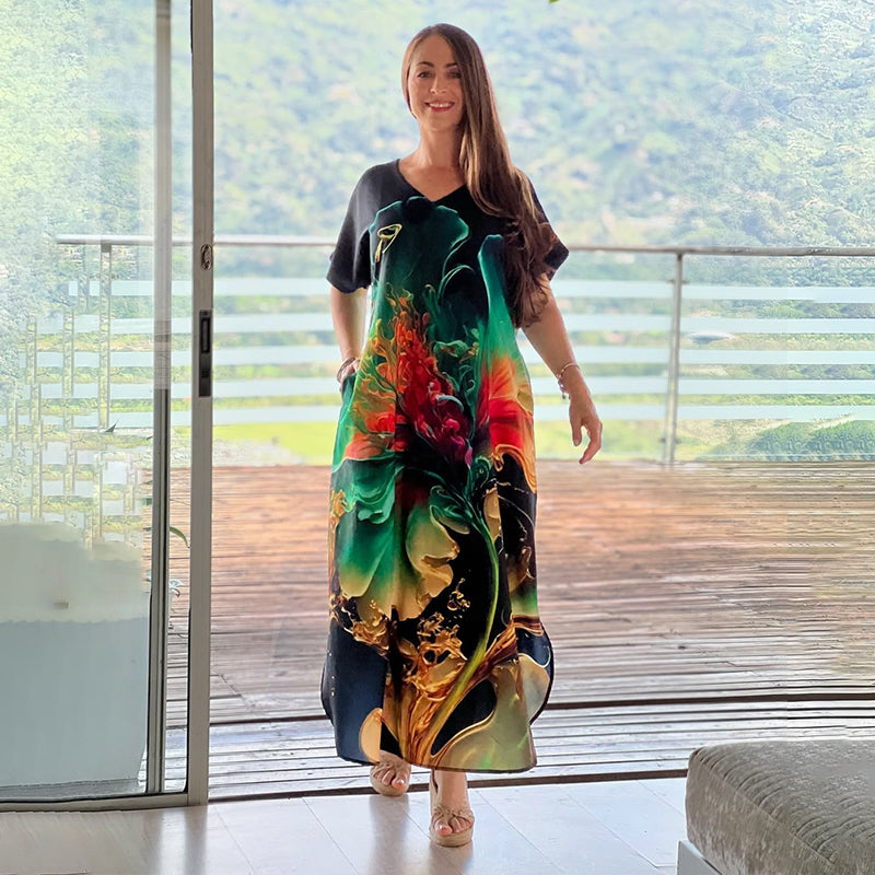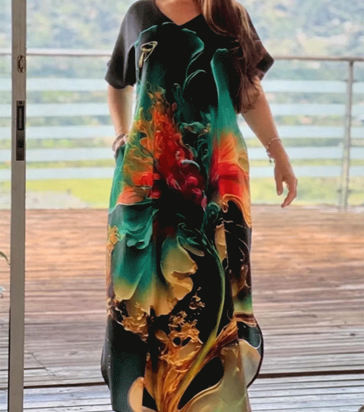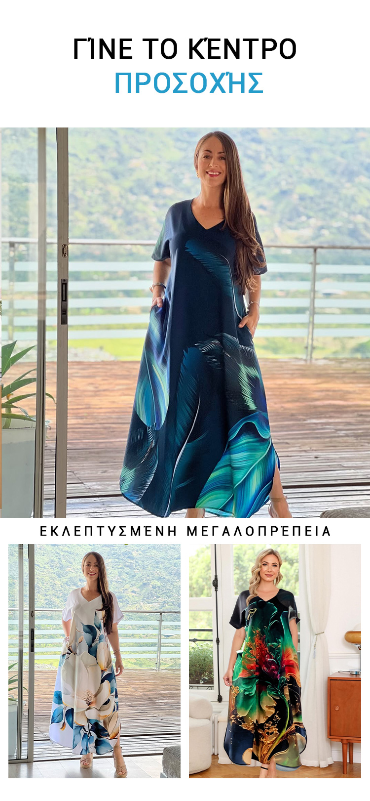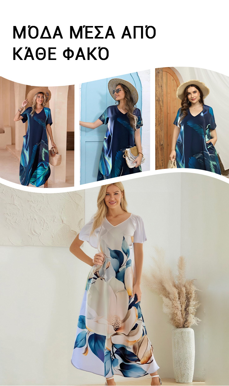 👗 Τυπωμένο φόρεμα με κοντό μανίκι