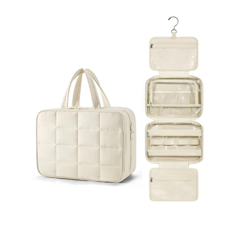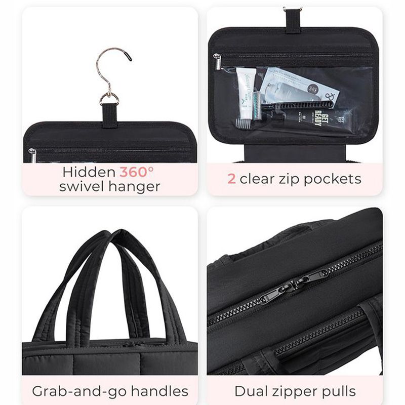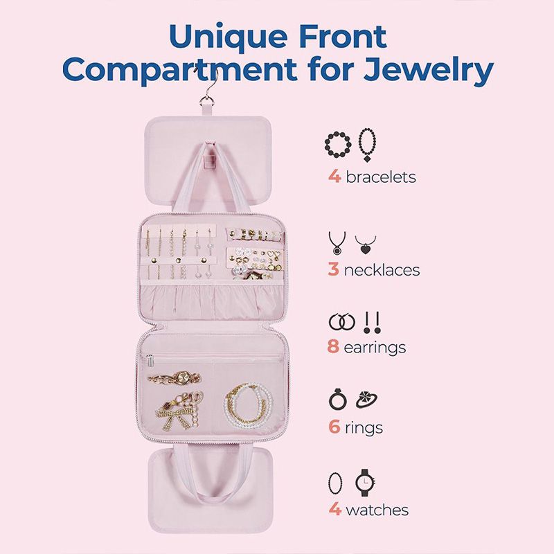 ΠΟΛΛΑΠΛΕΣ ΘΕΣΕΙΣ: Σχεδιασμένο με πολλαπλές θήκες για είδη υγιεινής και ένα ειδικό στρώμα για κοσμήματα, μπορείτε εύκολα να τοποθετήσετε τα προϊόντα πλύσης, τα είδη υγιεινής και τα κοσμήματά σας ξεχωριστά για να οργανώσετε το ταξίδι σας. Μην ανησυχείτε για τα ταξίδια μεγάλων αποστάσεων.