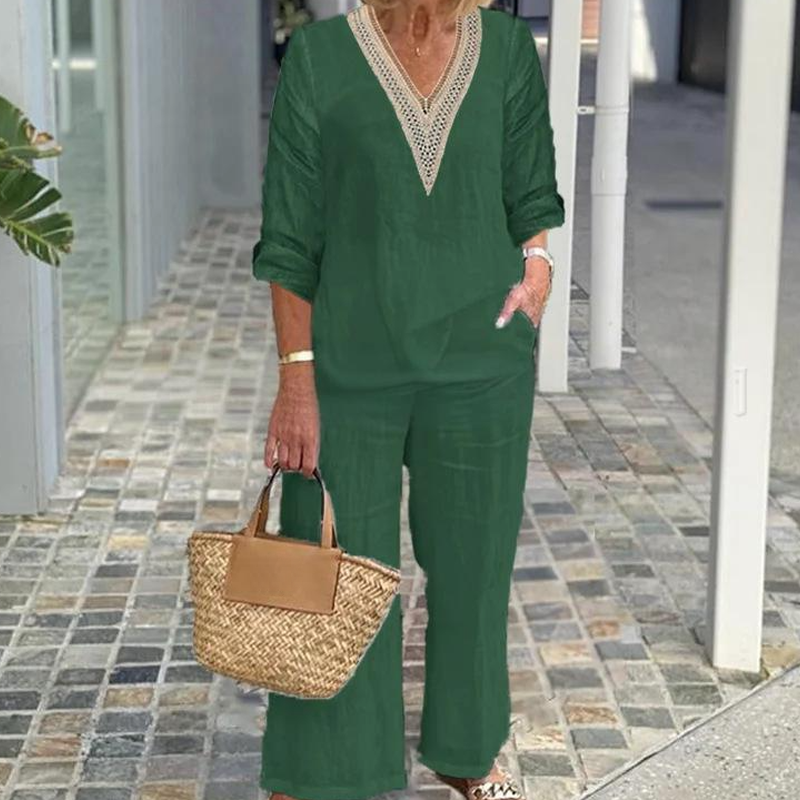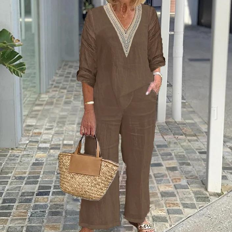ΑΝΕΤΗ ΦΟΡΕΣΗ: Με τη χαλαρή αλλά και κομψή γραμμή του, αυτό το σετ προσφέρει ελευθερία κινήσεων και άνεση όλη την ημέρα. Η φαρδιά γραμμή ταιριάζει σε κάθε σωματότυπο, προσφέροντας μια αίσθηση αναπνοής και ελευθερίας, είτε εργάζεστε, είτε κάνετε δουλειές, είτε χαλαρώνετε στο σπίτι. Δεν χρειάζεται πλέον να θυσιάζετε το στυλ για την άνεση — αυτό το σετ προσφέρει και τα δύο χωρίς κόπο.