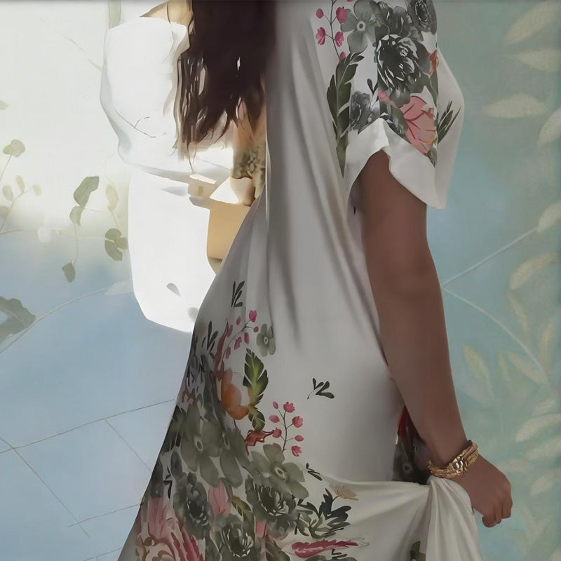 1* Χαλαρό φλοράλ φόρεμα με V λαιμόκοψη