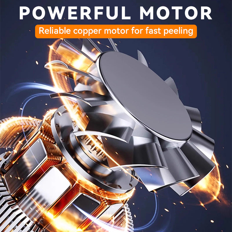 Ισχυρός κινητήρας με χαλκό – Εξοπλισμένος με έναν κινητήρα υψηλής απόδοσης με χαλκό, αυτός ο ηλεκτρικός αποφλοιωτής αφαιρεί αποτελεσματικά και γρήγορα τη φλούδα από μια μεγάλη ποικιλία φρούτων και λαχανικών. Ο κινητήρας προσφέρει σταθερή απόδοση, χειριζόμενος χωρίς κόπο ακόμη και τα μικρότερα φρούτα χωρίς να κολλάει ή να χάνει ισχύ. Ανθεκτικός και αξιόπιστος, αποδεικνύεται ένας πολύτιμος σύμμαχος που σας εξοικονομεί χρόνο στην κουζίνα.