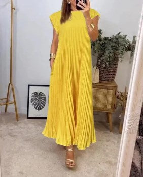 【M-3XL】Αμάνικο πλισέ απλό μονόχρωμο φόρεμα